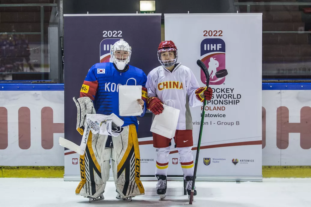 08.04.2022 MŚ Kobiet 1B, Chiny - Korea 5:0