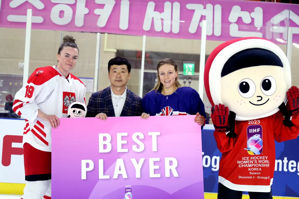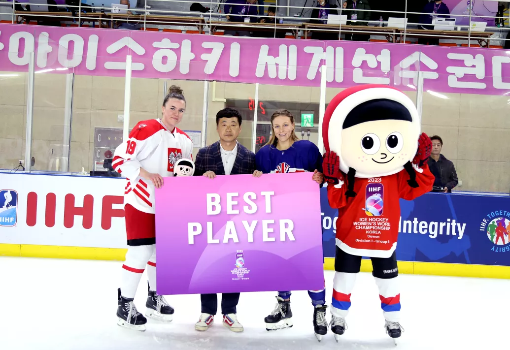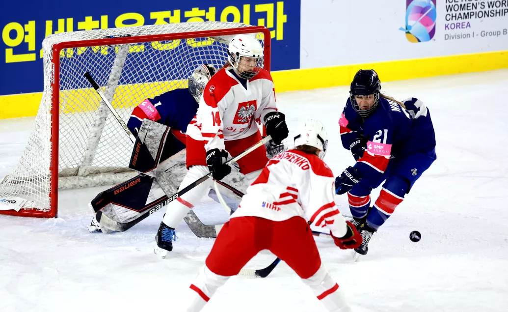 20.04.2023 MŚ Kobiet 1B Polska - Wielka Brytania 2:1 fot. Koreański Związek Hokeja na Lodzie / IIHF