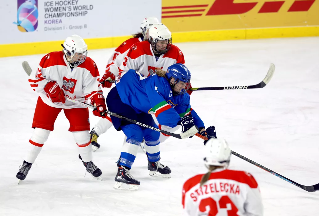 23.04.2023 MŚ Kobiet 1B Polska - Włochy 1:0 fot. Koreański Związek Hokeja na Lodzie / IIHF